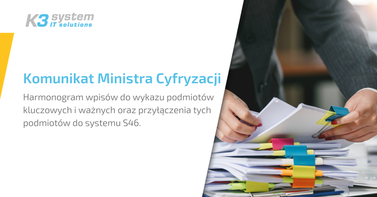 Komunikat Ministra Cyfryzacji w sprawie harmonogramu wpisów do wykazu podmiotów kluczowych i ważnych oraz przyłączenia tych podmiotów do systemu S46